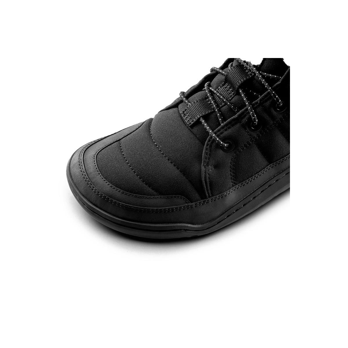 Breite Passform, Nullsprengung und Flexibilität, damit der Fuß natürlich arbeitet und die Haltung auf kalten oder nassen Wegen stabil bleibt.