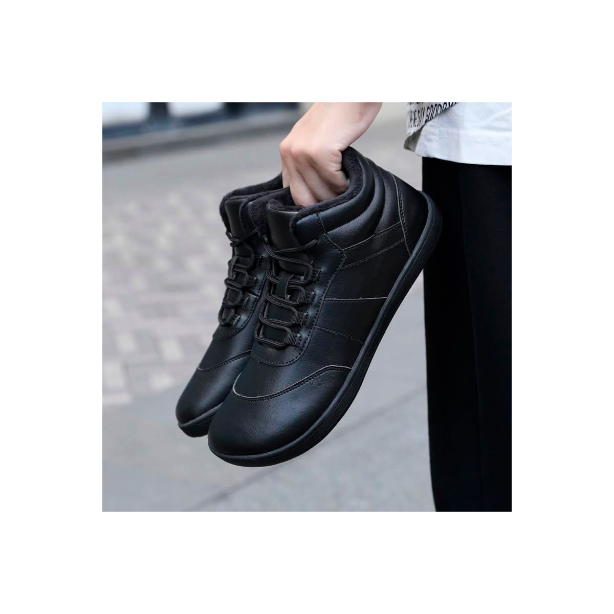 The thin and flexible sole with zero drop keeps the barefoot essence alive even in winter. Your feet move, feel the ground and work the way they should. You walk light, with better posture and with just the right protection for cold and rainy days in the city.