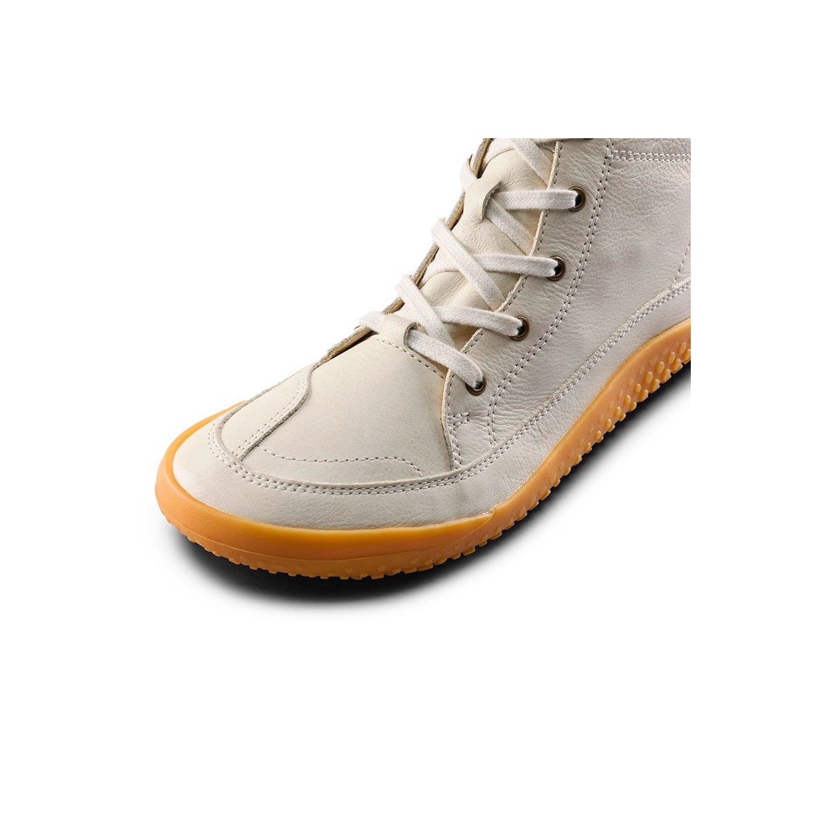 The upper and lining are made from Wild Hide cow leather, chrome-free, soft yet resistant, sourced from farms that respect animal welfare. A suede layer protects against mud, while the flexible rubber sole — a mix of natural and synthetic compounds — gives grip and durability. Every step feels alive, with full ground connection.