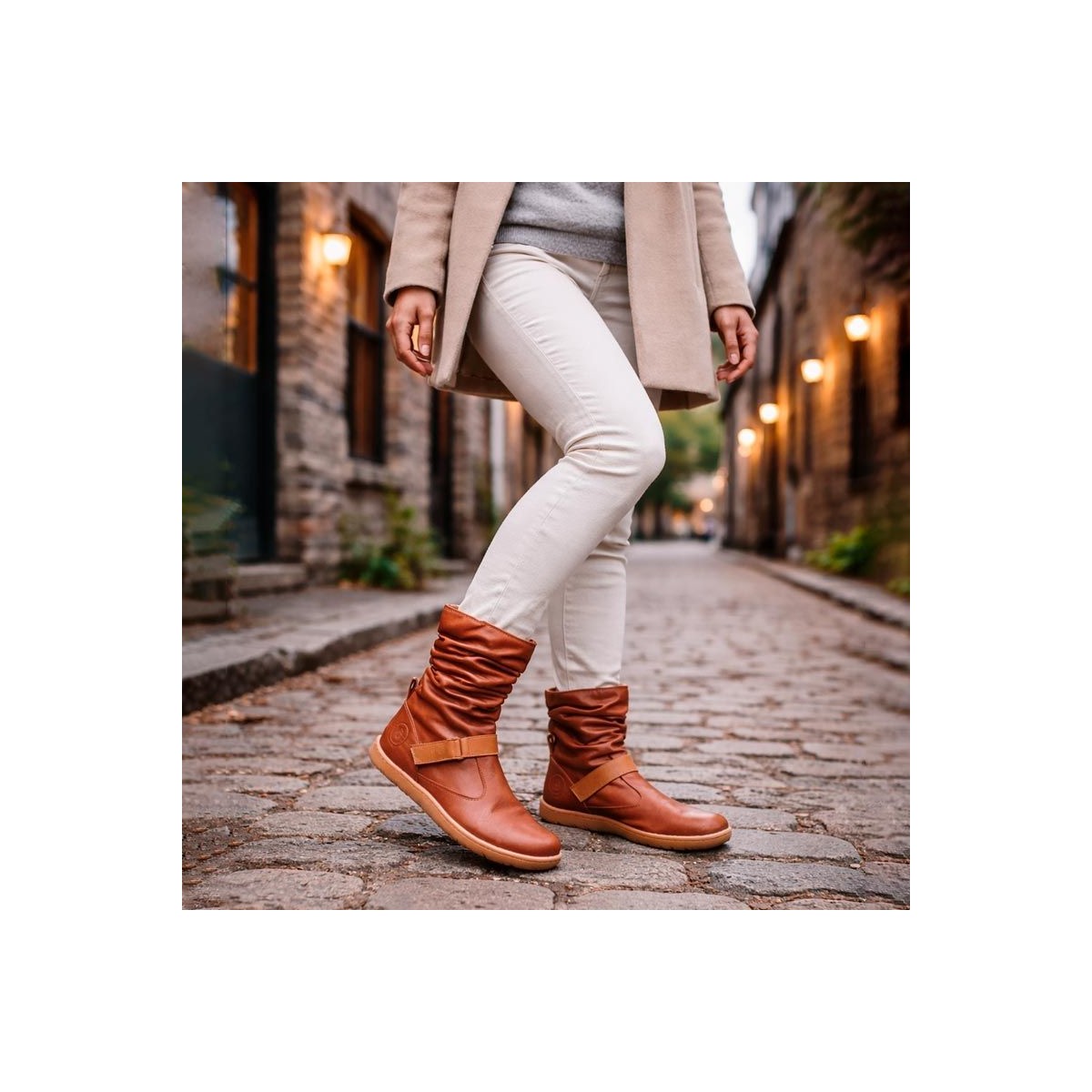 O couro macio envolve os teus pés, enquanto o forro interior mantém uma sensação de calor leve e natural nos dias frios.